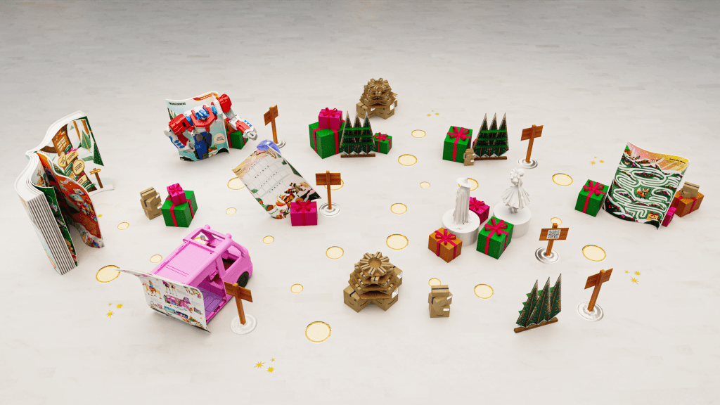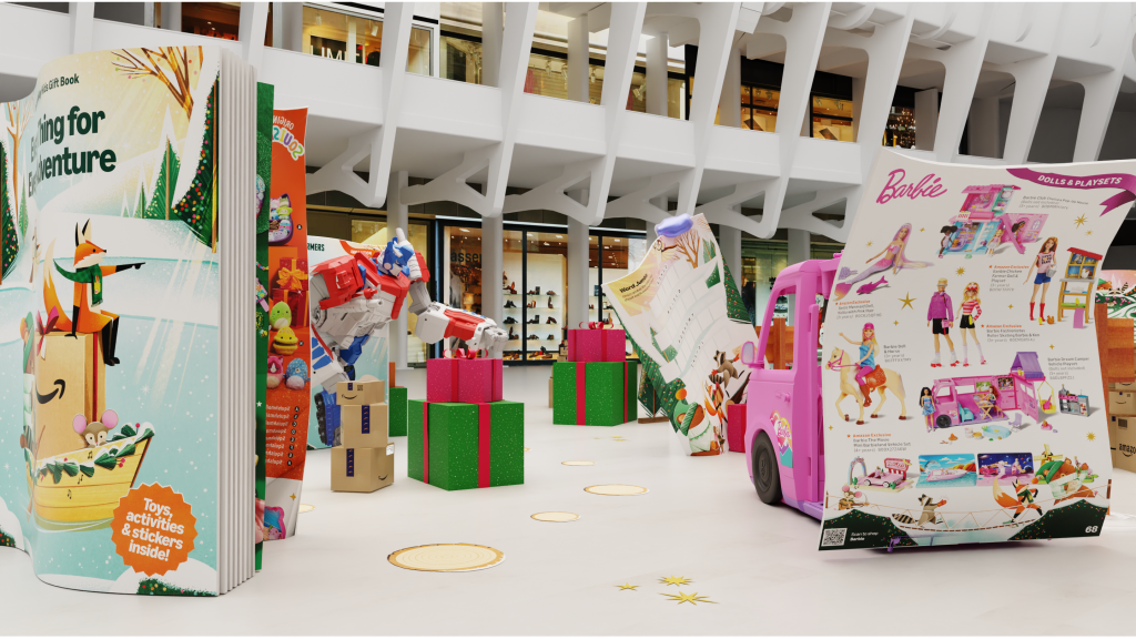 Each year, Amazon releases a kids’ gift book for the holidays. This time, the catalogue burst open, making kids’ wishlists come true with larger-than-life fabricated toys, retail displays, and peek-a-boo boxes at the Oculus Mall.