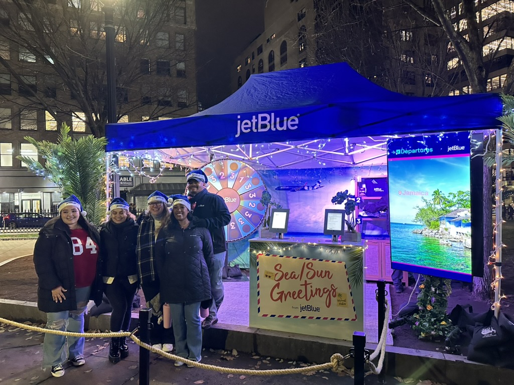 During the holiday season, we have produced another JetBlue spin-the-wheel sweepstakes at the Boston Snowport Market & Boston Commons Tree Lighting ceremony. This time it was Caribbean-themed with a AI-Photo booth and physical postcard prints. In total, we gave away ~$15.000 worth of prizes.