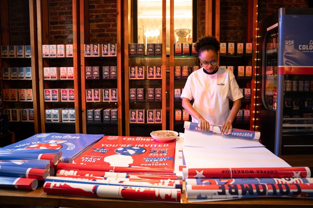 In tandem with the announcement of La Colombe being the Official Coffee Partner of U.S. Soccer, we transformed the flagship La Colombe Workshop into a soccer-themed cafe with an expedited timeline. This included a large LED screen with a stage for the local band Snacktime, Philly-inspired food, drinks and memorabilia. Additionally, we had local artist King Saladeen create unique soccer balls for display.