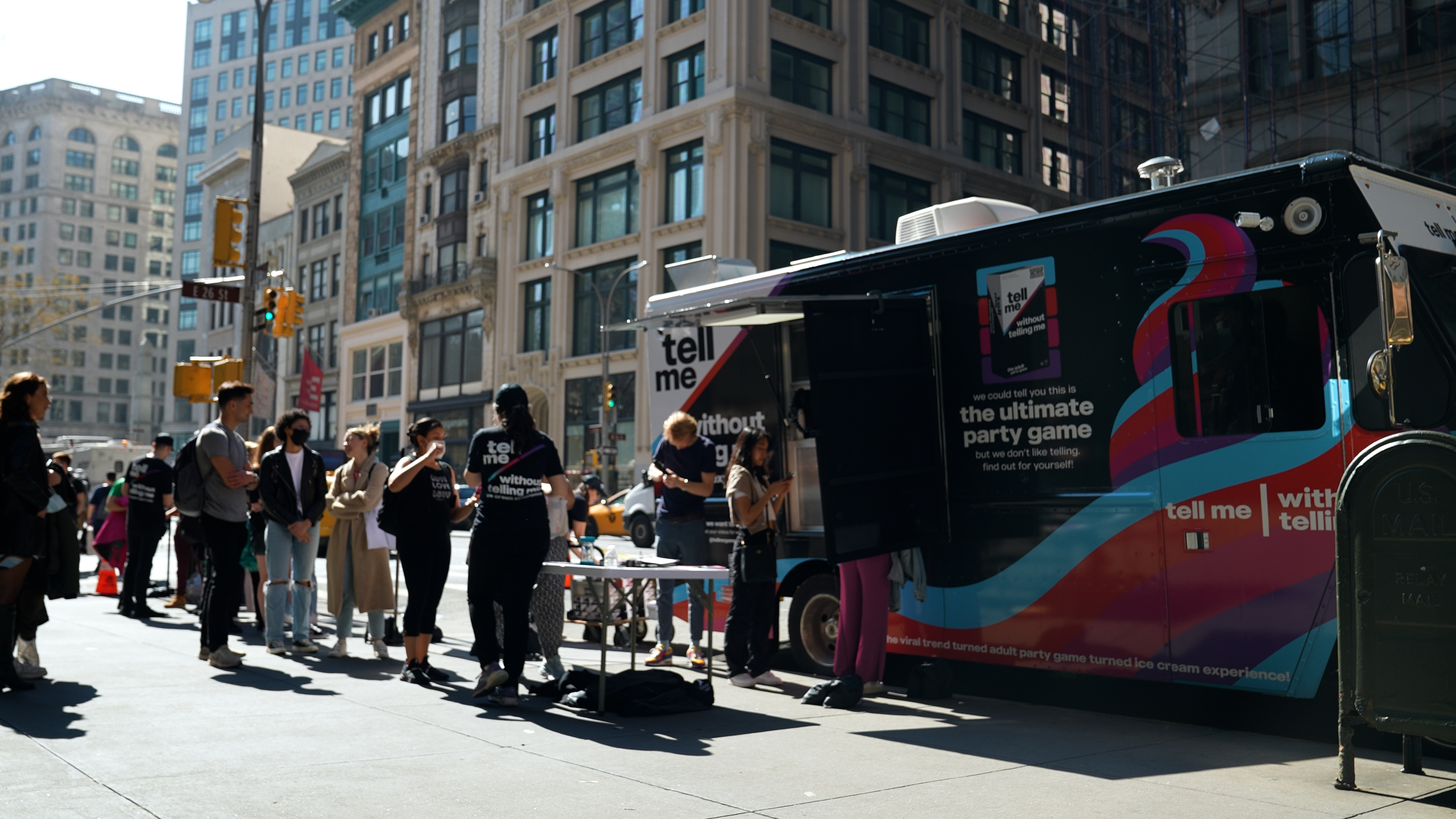 A promotional ice cream truck experience to celebrate the new release of Spin Master’s new adult party game (TMWTM) in (3) prominent areas in New York City.