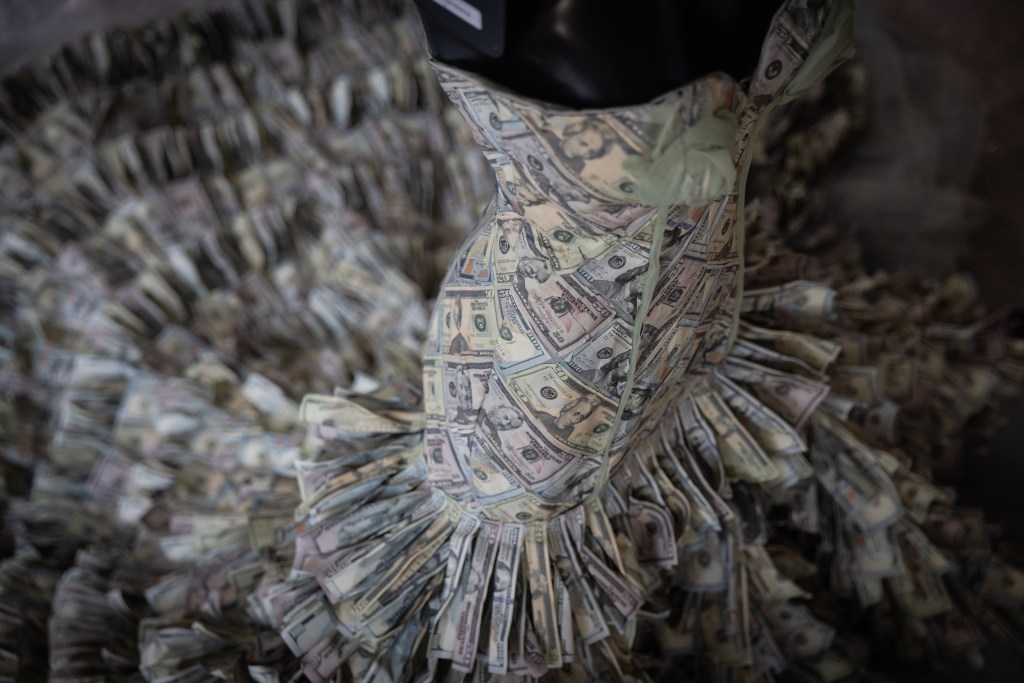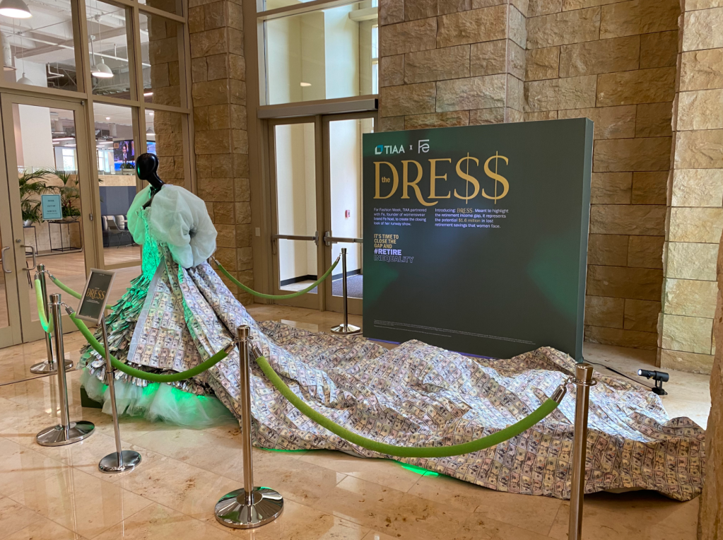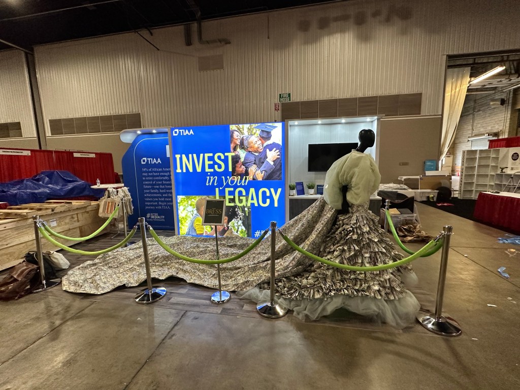 This elegant dre$$ was featured on the New York Fashion Show. It served as a statement to make people aware of the income inequality for women. This started out as a window display which soon traveled to (6) different locations, Soho NY, Midtown Manhattan, FIT University NY, Charlotte NC, New Orleans LA, and Indianapolis IN.