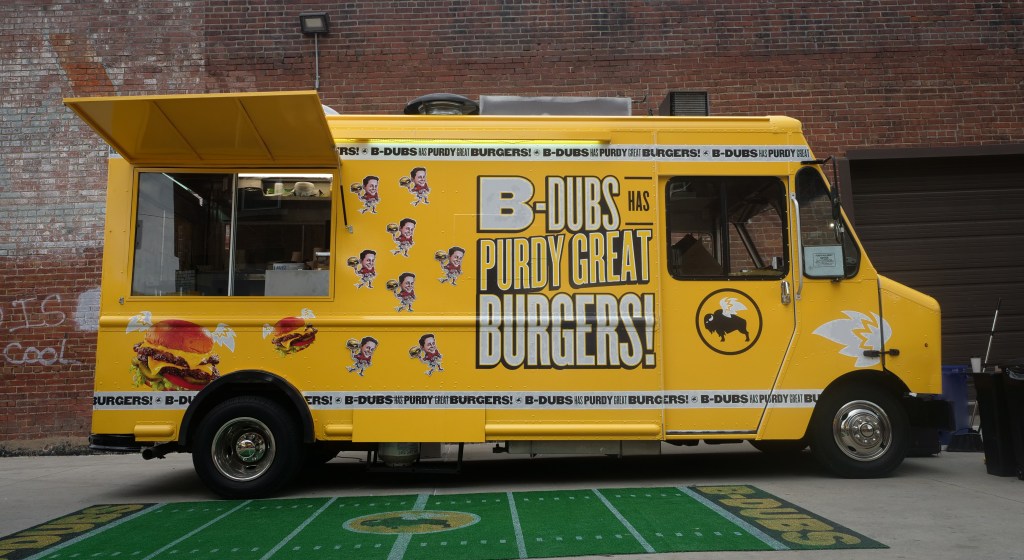 During the NFL Draft in Kansas City MO, we popped up with a custom B-DUBS food truck where Brock Purdy, quarterback of the 49ers, served juicy burgers to hungry football fans.