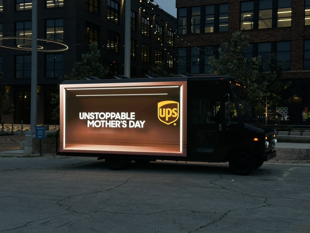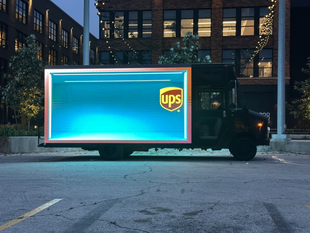 For the second time, we produced a custom-designed 26′ step van with (2) larger-than-life LED screens built into the passenger & driver side of the vehicle. For (2) days in Austin, this truck drove around and played custom software to track the vehicle and display the closest UPS store from our location.